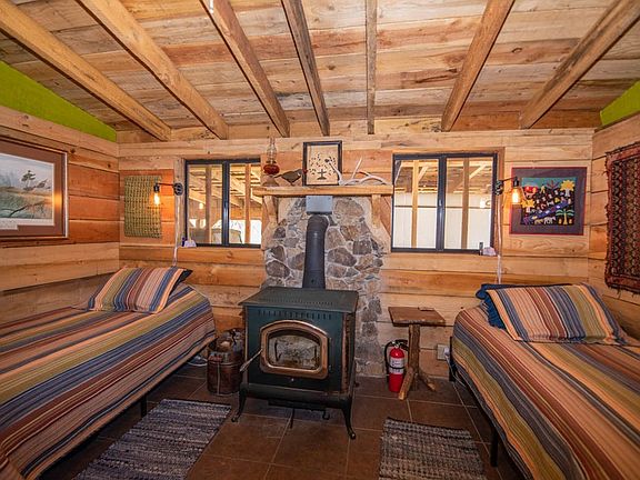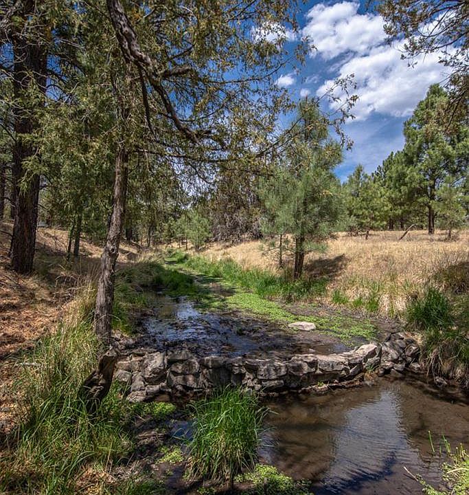Shaded in a stand of mature oak trees this cozy hunters cabin has all the do-dads! Solidly sitting along the bank of a seasonal creek. The Little Creek flows into a small pond with the occasional duck feeding in the reeds. From the screened in porch watch deer and elk graze and water along the creek bank. On almost an acre, this horse property has many possibilities to add to or build a new home. Enjoy a family reunion under the stars by the fire pit and babbling sound of the creek. Two RV electrical hooks-ups, carport, septic system and well. Custom rock and wood privacy wall. Wild West meets Tiny Home. Relax and kick up your feet next to the creek, rough-n-comfort!