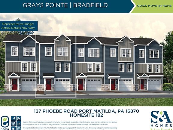 Located within the State College School District and just 2 miles from I-99, Grays Pointe is part of the Grays Woods master-planned community. Residents will enjoy an ultra-convenient location adjacent to the award-winning Grays Woods Elementary school, and will have easy access to walking trails, bike paths, and an upcoming 40-acre township park. The community is just 5 minutes from the area's best shopping including Wegmans, Target, Trader Joes, Home Goods, and much more.The smart, three-level design of the Bradfield lets you make the very most of every living space. This townhome includes:Luxury kitchen package with quartz countertops, upgraded white cabinets, center island with overhang, and stainless steel appliances (smooth top range, built-in microwave, and dishwasher). Luxury vinyl plank flooring throughout the entire main level. 10x10 deck off the kitchen. Wafer LED lighting. Quartz vanity top in owner's bath and bath 2. Unfinished walk-out basement - garage level entry. Garage door opener. Plus much more...Contact us today for more details!*Photos and virtual tour are of a similar home - not actual home for sale. Actual features and finishes vary. See Sales Representative for details.Contact us today for more details!*Photos and virtual tour are of a similar home - not actual home for sale. Actual features and finishes vary. See Sales Representative for details. Home Amenities include: GreenConstruction, WalkInClosets, DiningRoom, FamilyRoom.