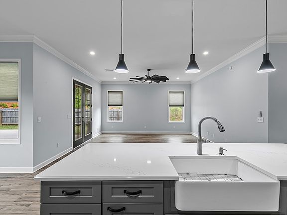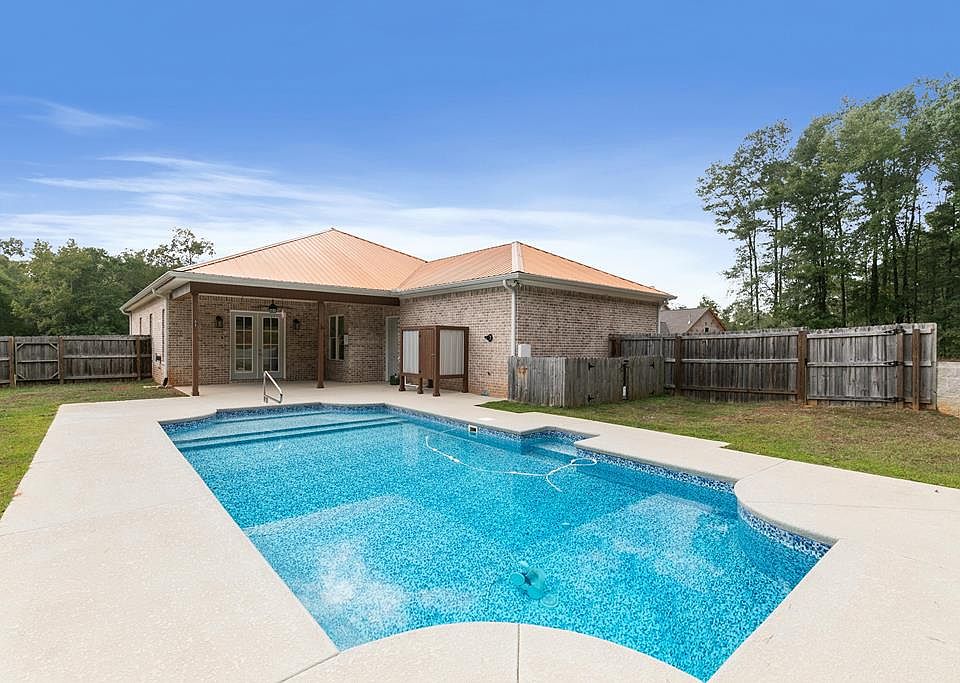 Custom-built in 2019, this stunning home in The Village subdivision offers 1,939 sq ft of beautifully designed living space with thoughtful details throughout. From the moment you step inside, the 10' ceilings and 8' doors create an open, airy feel that makes the home live even larger than its square footage. The kitchen is a true standout, featuring a gas stove, stainless steel appliances, and a custom walk-in pantry. The open living area is filled with natural light, showcasing the private backyard oasis. Step outside to enjoy the beautiful in-ground pool with serene views of the tree line behind the property. The primary suite is exceptionally well designed, offering a spacious layout and a gorgeous custom tile walk-in shower in the master bath. Every detail of this home was built for comfort and longevity, from the brick exterior to the metal roof and the generous corner lot. This one-of-a-kind home is truly move-in ready and waiting for its next family to love. Homes like this do not come available often—don't miss your chance to own a custom gem in The Village.