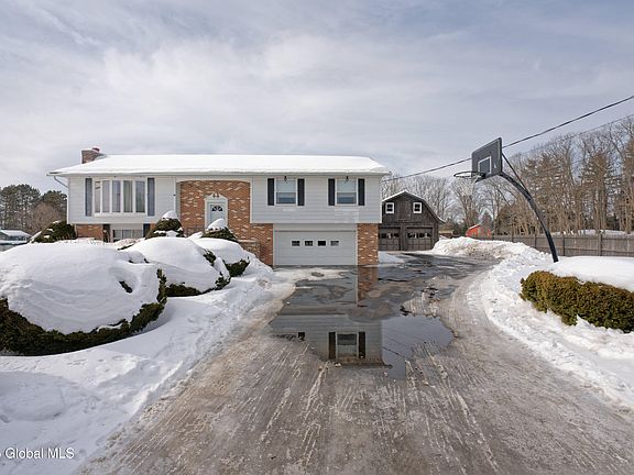 This beautifully maintained raised ranch sits on just under and acre and a half on a quiet, dead-end street. Featuring one and three-quarter bath, foyer entrance with coat closet, spacious dining room with sliding glass doors leading to a large deck, open working kitchen with plenty of counter space, cozy fireplace in the downstairs family room, primary bedroom with 3/4 bath, an abundance of storage throughout and attached garage with storage and workbench. Settle in by the wood fireplace on the ground level, take in the scenery on the back porch or create your dream workshop in the multilevel detached barn/garage. This home has fantastic bones and is ready for your finishing touches!