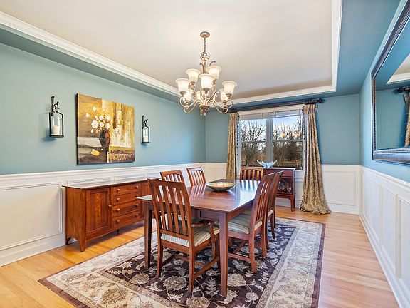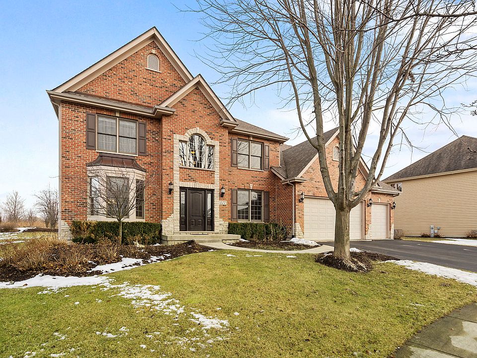 Distinguished from the rest, this executive residence is sited on THE premiere lot in desirable Harvest Ridge ~ backing to peaceful prairie, on a quiet cul-de-sac, and a minutes walk to Heartland Elementary. Boasting noticeable high end craftsmanship and amenities, this home is sure to impress the most discerning buyer! HW flooring, volume ceilings, arched entryways, and extensive millwork throughout ~ incredible attention to detail. Chef's kitchen features all SS appliances w/ double oven, expansive island w/ breakfast bar & under storage, substantial counter space, and a separate dinette w/ exterior access to the paver patio & fire pit. Soaring family room w/ floor-to-ceiling windows and fireplace feels so cozy but offers an abundance of natural sunlight! Ideal mudroom w/ built-ins and utility sink is so convenient ~ a second floor laundry, too! Fantastic finished basement w/ bar, full bath, and fifth bedroom. Truly fabulous views!!! Impeccable!