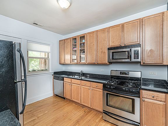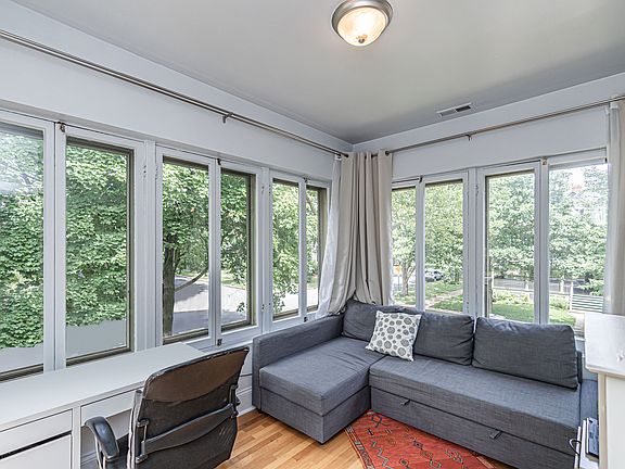 "Welcome to this stunning, sunlit, and spacious two-bedroom top-level condo nestled in a beautiful treetop setting. As you enter the inviting lobby, you'll be greeted by a bright staircase leading up to the condo. Step into the foyer, which opens up to the generous, sun-drenched living room with a bonus sunroom area featuring western-facing windows to soak in the beautiful setting sun. It's the perfect space for entertaining or creating a cozy work-from-home nook! Down the hallway, you'll discover the light-filled large formal dining room that's just perfect for hosting your biggest holiday gatherings, conveniently adjacent to the kitchen. You'll love cooking in the smartly designed, classic kitchen with space-saving shelving, all newer stainless appliances, gleaming granite countertops, and an undermount sink. The kitchen also leads to a convenient laundry nook with full-sized laundry and additional storage. When it's time to unwind, you can retreat to one of the two spacious bedrooms, each offering ample privacy with a split-style layout. The oversized primary bedroom at the front of the condo features western views, easily accommodating a king-sized bed, while the generous second bedroom boasts similar exposure. The large hallway bath boasts timeless finishes along with modern updates. Step out to the back deck for your morning coffee and enjoy the privacy. The property also has central air. You'll find additional dedicated storage space in the basement and an area for bikes. With gleaming hardwood floors, abundant storage throughout, sunlit rooms, and a well-maintained building with ample reserves and professional management (A new roof was installed last year), plus one private parking spot and easy street parking, this place is truly remarkable! Enjoy the quintessential of this classic Oak Park community. This fantastic, quiet location is also close to restaurants, grocery stores, shops, schools, parks, farmer's markets, pools, public transportation, and more! All that's left to do is move in, unpack, and savor the delightful surroundings. This is undeniably the home you've been dreaming of."