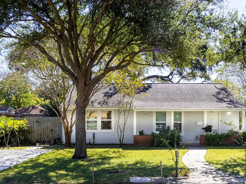 Fish village charmer. Many updates throughout. AC, Windows, appliances, flooring, bathroom. Two bedroom one bath. Corner lot with off street parking in the front and side. Two car garage. Tile floor throughout. Fenced yard. Mature oak trees. Laundry room is in the home. Walking distance to local Lindale Park offering Tennis, Basketball, Dog park, Walking trail and Playground. Steps to UTMB and downtown. Home does not come with furnishings.
