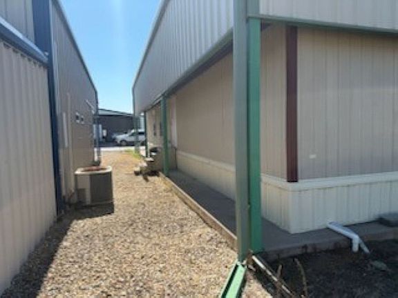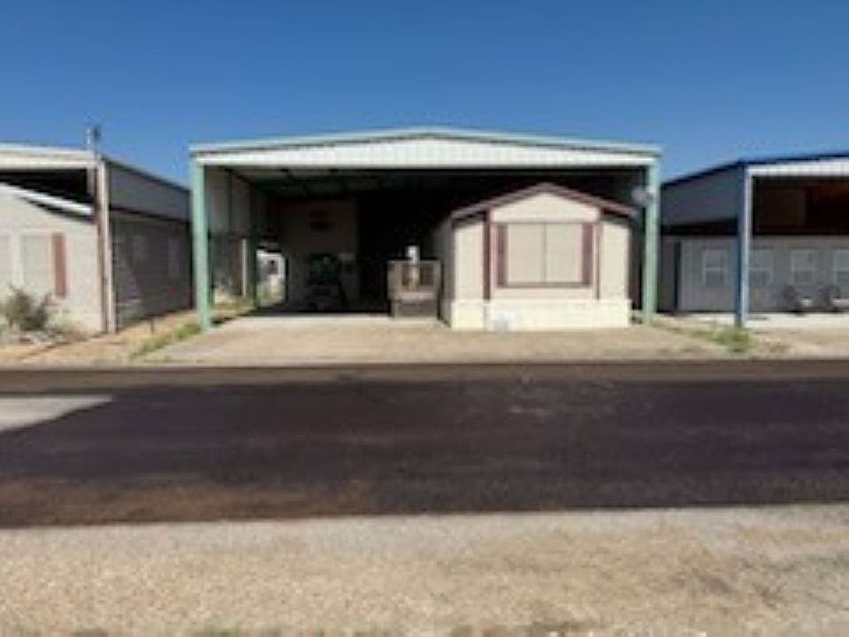 This home is covered with a structural steel port and sits on a concrete foundation.