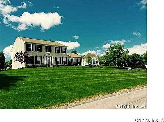 Pristine 2,372 sq ft colonial sits on a beautiful 1.04 a lot overlooking the hills of Camillus. Features 4 BR, 2.5 BA. Spacious eat-in kitchen w/island, granite counters & stainless steel appliances. Opens to gorgeous eating area adorned w/floor to ceiling windows & sliding door to large back yard. Lovely living RM w/gas fireplace, formal dining RM, den/study. Upstairs has 4 BR w/2 full baths, master suite w/walk in closet & bath. Lower level family RM w/gas fireplace, entertaining area w/bar. Laundry RM, & plenty of storage. Sq ft in lower level is not reflected above additional 830 sq ft!