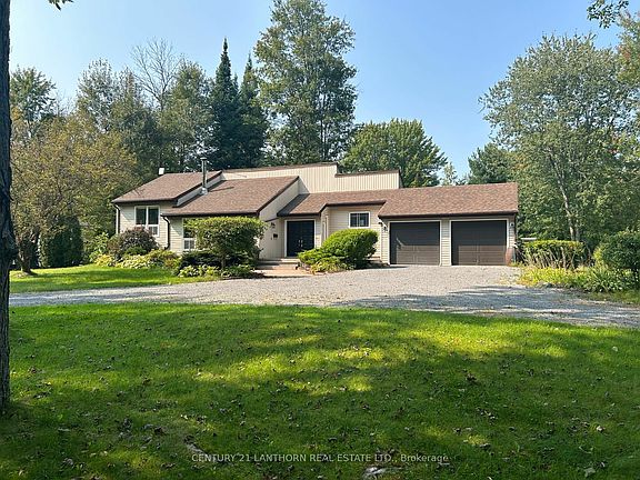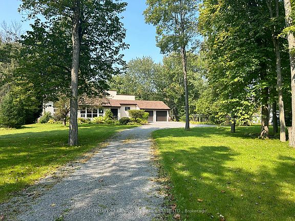 Welcome to 127 River Garden Rd, Marmora, a charming 3-bedroom, 1-bathroom home nestled on a picturesque deep lot. This property offers a dual circular driveway leading to a spacious 2-car attached garage, providing ample parking and convenience. Step inside to discover the inviting living room, featuring stunning wood beams on the ceiling and a grand stone fireplace, perfect for cozy evenings. The living and dining areas boast beautiful hardwood floors, adding warmth and character to the home. The kitchen is enchanting with its unique brick wall and built-in storage, offering both style and functionality. The full unfinished basement includes a laundry room and offers plenty of open space and additional built-in storage; ideal for customization to suit your needs. The property is surrounded by lush greenery, perennial gardens, and mature trees, ensuring privacy and a serene atmosphere. Located on a quiet dead-end street, the home provides deeded water access along the scenic Crowe River, making it a perfect retreat for nature lovers. Don't miss the opportunity to make this beautiful property your new home.