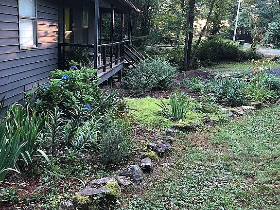 3 Bedroom 1.5 Bathroom home on a .75 acre lot in Green Acres, with pretty lake view. Perennial garden beds, fig/blueberry/wineberries, additional storage shed and additional 12x20 garage. Large deck and a beautiful wooded setting on a quiet cul de sac with wonderful neighbors, currently allowing direct lake access.Gorgeous Alberene soapstone countertops.