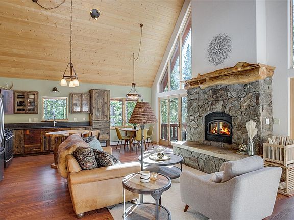 Experience mountain living to the fullest! This chalet style home is on Quartzville Creek, includes private trails, 2 bridges, and a bonus, divisible lot! With South-facing windows and 24ft vaulted ceilings, its open concept layout is engulfed with natural light. A stone fireplace and custom finishes make it ideal for entertaining. The lower level includes another living area, bonus room and walk out patio with gorgeous stonework. Summit four 14ers from your door while just 25 minutes to Breck!