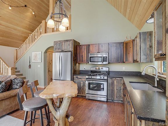 Experience mountain living to the fullest! This chalet style home is on Quartzville Creek, includes private trails, 2 bridges, and a bonus, divisible lot! With South-facing windows and 24ft vaulted ceilings, its open concept layout is engulfed with natural light. A stone fireplace and custom finishes make it ideal for entertaining. The lower level includes another living area, bonus room and walk out patio with gorgeous stonework. Summit four 14ers from your door while just 25 minutes to Breck!