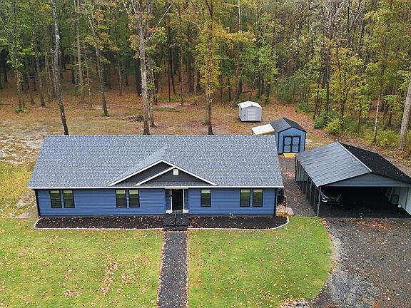 Tucked away at the end of a dead-end road, this beautiful 3-bedroom, 2.5-bath home sits on 4.2 secluded acres. Inside, you'll find thoughtful upgrades throughout—quartz countertops, custom sinks, upgraded lighting, and a spacious tiled shower in the owner's suite featuring Bluetooth and LED lighting. The kitchen offers a pantry for extra storage, while the mudroom adds everyday convenience. A water softener and Cove security system are already in place, along with an attached pressure-washing system and a carport. Every detail was considered when the owners built this home—come see all the care and quality that went into this private retreat!