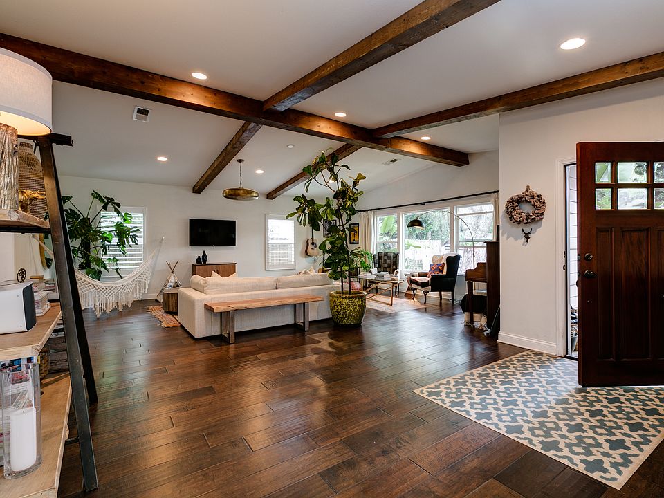 This tastefully renovated 3 bedroom, 2 bathroom home is truly stunning! The spacious eat-in kitchen boasts plenty of counter space and stainless appliances. The vaulted ceilings and exposed beams give this home unique character. Just a short distance to the most desirable restaurants, coffee shop & organic market in Meiners Oaks.