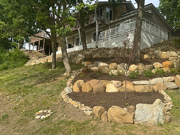 Beautiful, elevated riverfront home overlooking the Illinois River with approx. 162 feet of water frontage in the beautiful town of Hennepin, Illinois. This house has many great features to offer, including large upper and lower decks with beautiful views, nicely landscaped yard, and a walk out basement to a paver patio with hot tub & pergola. Whole house generator. The inside offers a 3-4 bedroom floorplan with a large primary bedroom including bath and walk in closet with beautiful river views. Laundry is just off the primary bedroom. Main level features a nice kitchen with a breakfast bar with river view and spacious cabinetry & pantry with all appliances included. The interior has updated vinyl and laminate flooring and custom window blinds throughout. This home is located near city parks, grocery store, public boat launch, wetlands nature area, and only a 30-minute drive from Starved Rock & I&M canal. Make this your full-time home or vacation getaway. It's a must see to view all the other great features of this one-of-a-kind waterfront property! The sq footage total includes the walk out lower level.