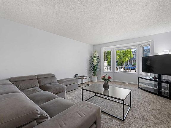 *Brand New High Efficiency Furnace* End Unit | Renovated Townhome | Gated Community with Private Entry & Park | Steps from Crossing Park CBE School | 1,289 SqFt | Quartz Countertops Throughout | Stainless Steel Appliances | Pantry | Open Floor Plan Kitchen & Dining | Expansive Living Room | Large Bay Windows | Ample Natural Light | Spacious Bedrooms | Basement Rec Room | Basement Laundry | Fully Fenced Backyard | Patio | TWO Assigned Parking Stalls. Welcome home to your beautifully upgraded 2-storey end unit townhome boasting 1,289 SqFt. Pull into your private gated community and park in your two assigned parking stalls right outside your front door. Step onto the storybook front porch where you can enjoy your morning coffee or afternoon tea. The front door opens to a bright and welcoming foyer and living room. The living room has a bay window filling the space with warm natural light. The open floor plan kitchen and dining room make for a happy home. The kitchen is upgraded with brand new sparkling quartz countertops, new stainless steel appliances, and new cabinetry. The corner pantry is an added bonus for your dry goods storage. The door off the dining room leads to your backyard making a seamless transition for indoor/outdoor living in the warm summer months. The main level is complete with a 2pc powder room. Upstairs holds 3 bedrooms and 1.5 bathrooms. The primary bedroom is paired with an expansive bay window, extended closet and private 2pc powder room. Bedrooms 2 & 3 upstairs are both a generous size. The 4pc bath upstairs is outfitted with a tub/shower combo and single vanity with a quartz countertop and great storage below. Downstairs, the basement has a rec room, currently used as a bedroom and a large utility/furnace room that holds your laundry. Outside is a great backyard with a stone patio and plenty of lawn space. Your gated community has a park and playground only accessible to the residents! The location here truly can't be beat; steps away from the CBE Crossing Park School, Martindale Cricket Grounds and the Martindale C-train Station. Hurry and book a showing at this incredible townhome today!