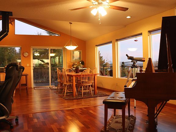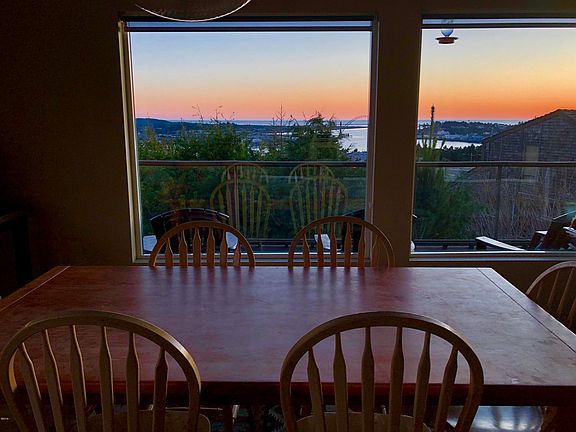 Family home in Walker Heights with best views of bay, bridge and ocean around town! Finlandia Sauna, heated tile floors downstairs! Jotul gas hearth, kitchen open to living with stainless appl., gas range top, convection oven w/ baking stone, custom pantry, wrap around deck, covered patio, outdoor shower & hot tub! Pear, apple, redwood, sequoia & cedar trees in private, fenced yard, pet doors in place. Bonus rooms are bedrooms with closets, has easily housed a family of 5 children and 2 parents. Light and bright, just blocks from Bayfront and schools - this house has it all!