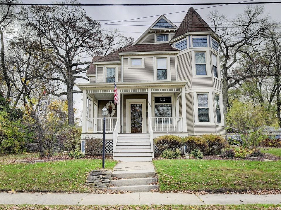 Fall in love with this one of a kind 2 story Victorian on gorgeous tree lined street. Enter into nine & a half foot ceilings throughout the main level with custom woodwork & vintage charm. Step into the updated kitchen featuring maple cabinets, granite counters, butcher block island, stainless appliances, wood beam ceiling & hardwood floors. Formal dining room with custom chandelier & tons of natural light through the oversized windows. Living room features hardwood floors, huge picture windows with stained glass touches & custom built-ins. Main level bedroom is huge with hardwood/carpet & tons of closet & storage space. Full bath on main with soaker tub/shower combo. Upstairs features 3 spacious bedrooms with generous closet space. Loft area offers great home office workspace. Full bath with double vanity, soaker tub & huge walk-in tile shower. Upstairs laundry room with sink, tons of cabinets & storage closet. Walk up the stairs to the huge unfinished attic that offers tons of potential extra living space if desired. Full unfinished basement offers tons of extra storage. Sunroom is perfect entertaining space or great space to enjoy the view of your peaceful yard. Deck with built-in HOT TUB. Fully fenced yard with 6-foot wood privacy fence. 2 NEW A/C units 2019 & 2020. NEWer boiler. NEWer windows. 2.5 car garage. Hardwood floors under carpet. Close to schools, shopping & entertainment, highway & forest preserve with walking/bike paths. Call this one home today!