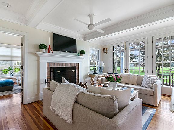 Down a flag drive is a magical spot bordering a farm. The property offers sweeping views and sounds of the ocean waves. You are greeted by a stand of hydrangea and flowering trees. This 3 bedroom 3 and 1/2 bath home was designed by a Southampton architect. The open floor plan offers lots of light and French Doors to let the outside inside. The first floor has a living room with an especially tall fireplace and dining area. There is a state of the art kitchen open to a sunroom for dining and relaxing. A pantry, laundry room and half bath are off of the kitchen. There is a library that could work for additional sleeping with a full bathroom. Second floor has master bedroom bathroom suite with a deck that provides magnificent views, two additional bedrooms and hall bathroom, and a loft/office area. There are ceiling fans, an outdoor shower, and large deck for summer entertaining. It is easy to bike to Sagg Main Beach or Gibson Beach and to fish off of the bridge on Bridge Lane. You could also kayak to the beach from the bridge on Bridge Lane where kayaks are available for rent. Very special home with architectural integrity. A 16' x 54' heated Gunite pool is off to the side and child safe. Owner just refinished all floors and has a no pet polic..Listing ID;754727