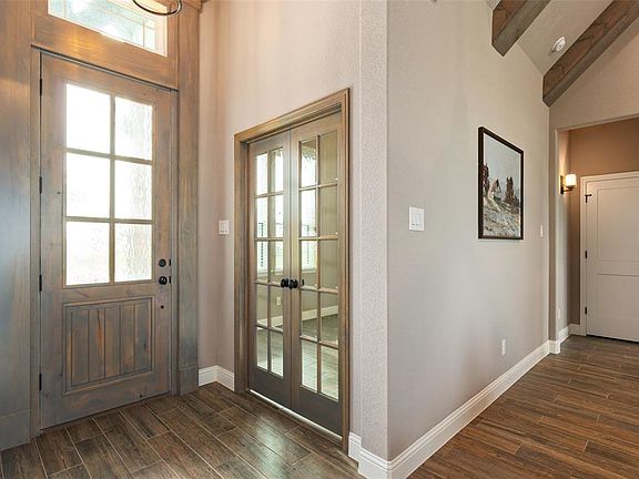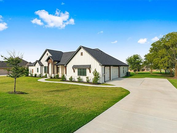 Exquisite White Modern Farmhouse perfection on a pristine 1-acre lot in Springtown's beautiful Stanford Estates neighborhood. Peaceful country living just 10 minutes from town and 25 minutes to Weatherford. 2019-built Ashlyn Homes stunner features gorgeous curb appeal (plus whole-house gutters and blinds), wood-look tile flooring, fully-cased front door, vaulted & beamed living room ceiling, stacked stone fireplace, and a knock-out kitchen with two-tone vent hood and island, and a huge pantry. Three secondary bedrooms split from the serene master with spa-like ensuite; dedicated study at the foyer; spacious covered porch with flat-screen wiring and fireplace for quiet evenings and relaxing views. Welcome home!