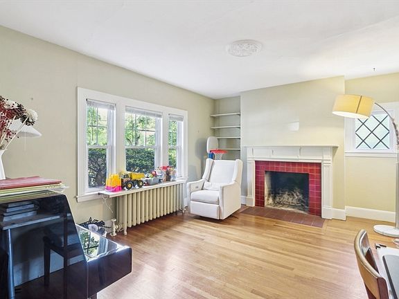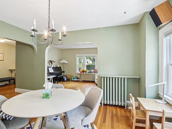 Perfect for commuting, entertaining and family life. This fabulous first-floor 2-bedroom condominium, set within a classic two-family residence at 127 Sumner Rd #1, is 3 minutes walking from the D Line T, Brookline High School, heated swimming pools with a kid special pool, basket/tennis gym, soccer/baseball field and Cypress St Playground. It features a living room with fireplace, a large dining room, and a spacious, recently remodeled eat-in kitchen with gas cooking and disposal. It has 2 off-street & deeded parking spaces. For added convenience, there is a dedicated private office space, a shared full bathroom, and a storage area in the basement. Enjoy updated windows, siding, and wooden floors throughout. Relax on the large front farmer's porch or the private screened-in back porch. Includes separate utilities, washer/dryer, and two off-street parking spots. Pets allowed. Prime location near public transit, high school, shops, restaurants, and all Brookline has to offer.