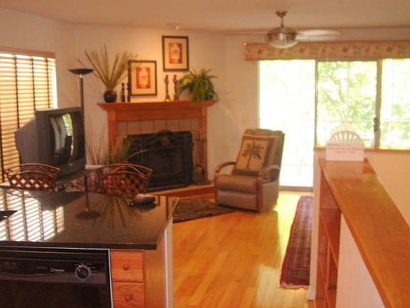 THIS IS A VERY UNIQUE 2 BR 2 1/2 BATH CONDO. FANTASTIC WATER FEATURE JUST BELOW YOUR SCREENED IN DECK. NICE WOOD BURNING FIREPLACE.CUSTOM CABINETS. GRANITE COUNTER TOPS. FORMAL DINING FOR 6 PEOPLE. BEAUTIFUL WOOD FLOORS AND UPDATED TILE.BOTH BEDROOMS HAVE THEIR OWN BATHS FOR COMPLETE PRIVACY.EASY TO SHOW...2ND HOME AND USUALLY AVAILABLE. ITS A MUST SEE.