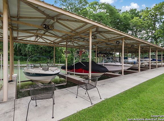 Move in ready Lake McQueeney lake home nestled in popular Treasure Cove; only a 3 minute boat ride to Lake Breeze Ski Lodge. Home sits high & dry above the 100 year floodplain, fronts the HOA waterfront property, & it includes an assigned single boat lift. Incredible water views from the kitchen, living room & master bedroom. Open floor plan, remodeled kitchen & fireplace. Live the true lake lifestyle surrounded by tropical landscaping & the oversized covered patio looking out to the water.