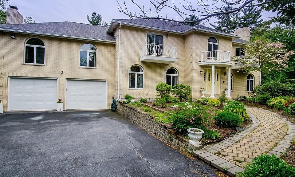 Very convenient location near highway and shopping, yet such a feel of privacy. This brick colonial located at the end of the cul de sac boast a gorgeous flat private lot, great floor plan and is low maintenance. Large eat in kitchen with granite counters and sliders leading out to a Trex deck, great for entertaining. Over-sized dining room located off the kitchen. Step up to family room with cathedral ceiling and wood burning fireplace. Formal living room with large windows and a second wood burning fireplace. Sun room with ceramic flooring, skylights and French doors. First floor 3/4 bath and laundry area. Office located on first floor. Granite steps lead upstairs to four bedrooms with gleaming hardwood floors and three full bathrooms. Master bedroom has private balcony. Main bath has large soaking tub. Partially finished walk out lower level. Central air. Brand new septic system.