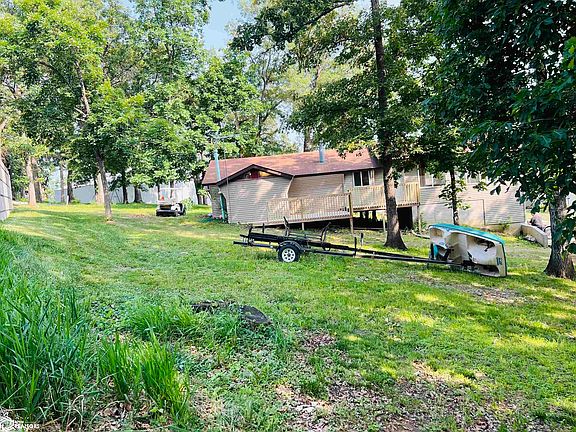 Quaint cabin with a lake view, conveniently located across the road from a private 10' access, equipped with a dock and boat lift. With the original part of this house being built in 1976, this home is truly a part of the lakes history. Situated on a 1/3 acre back row lot, surrounded by mature trees and overlooking the lake, it is a cabin to call home. The original part of this home is 580 sf. Truly vintage, it offers vaulted ceilings over the main living area with a wood-burning stove, one bedroom, and the kitchen. There is a bathroom that uses a self-sustaining clivus system. (not a flushing toilet) Septic installation will be required after the sale. On the lake facing side of the home is a newly added (2020) unfinished addition, offering an additional 600sf of living space, ready to make your own and extends the total living area to 1180sf. It is surrounded by large windows overlooking the lake, and access to two newly finished decks on both the east and west sides of the house to enjoy the outdoors. The addition is positioned over a 400sf garage. Both the storage shed and fire pit are included. Home is sold in 'as is' condition.