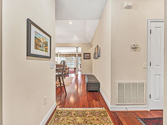 Village Green in The Waters Edge-Relax and unwind on your covered patio, which provides an unobstructed view of #17 fairway and green. This is the perfect spot for your morning coffee or hosting an evening gathering watching the beautiful sunsets. Beautiful cherry hardwood floors and tile baths. Masonry gas log fireplace for your enjoyment on a chilly day. An active membership is available for purchasers for $35K within 30 days of closing. Amenities include golf, fitness center, tennis, pickleball, swimming, restaurant and equestrian center.