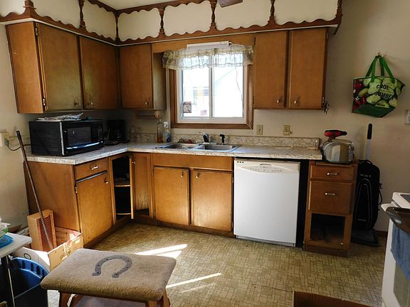 Apple Pie anyone? This very pretty city lot, gives home to some big apple trees, and this 4 bedroom ranch style home, also a 2 car detached garage and great backyard. The home has a metal roof, and vinyl replacement windows. Inside you will find some pretty wood floors in the bedrooms, spacious living room and basement which is partially finished with family room and pool table. The stove, refrig, washer and dryer all stay. Bring your elbow grease and some pretty colors, and make this one fresh for your family.