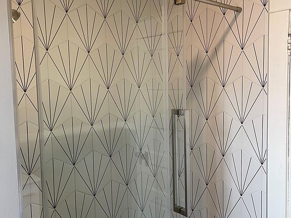 New lightingNew cabinetsNew vanityQuartz countertopsWalk-in glass shower enclosureDesigner style kitchen backsplashFully renovated