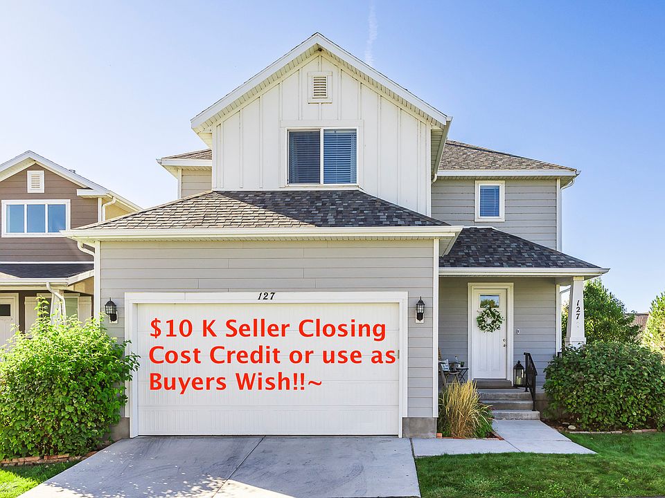 Open House this Saturday Nov. 15 from 10am-1pm $5k price reduction AND a $10K SELLER CREDIT to use for closing costs, rate buy down, or purchase price reduction. Buy into Equity with this Beautiful Single Family Home in The Springs subdivision of Waters Edge in Vineyard. Located on the end of the row, this home sits adjacent to an extra grassy area and the biking/hiking paths. Walk in to an Open Concept Living Room, Dining Area, Kitchen. Large Pantry, Guest Bath and Laundry Room on the main floor. Upstairs you will find 3 bedrooms and a loft style family room, which could easily become another bedroom if desired. The Primary bedroom has high ceilings and an En Suite bathroom with a separate shower/ tub and double sinks, along with a walk in closet. This home also has a FULLY FINISHED basement (with window wells for lots of light) that also has a family room, a 4th bedroom and another full bathroom! There is also an additional Flex space-no window- that could be an office, work out room, craft room, extra storage, reading nook--YOU decide!!! The backyard currently has garden boxes which can stay or go. The Waters Edge community has a astounding Clubhouse with lots of entertaining space and a kitchen, two pools, gyms, sports courts, picnic areas, fire pits, playgrounds and more! Situated within walking distance of the Utah Lake with lovely walking paths. The Grove Park is also nearby with a splash pad, sports courts and playgrounds. Located near Trax, which goes from Provo to SLC, makes commutes easy, and the new Utah City is being built nearby with so much more to come! This home also has an extra outdoor owned parking space!!! This sweet abode is priced to sell! Come and take a look and then Fall in Love!!