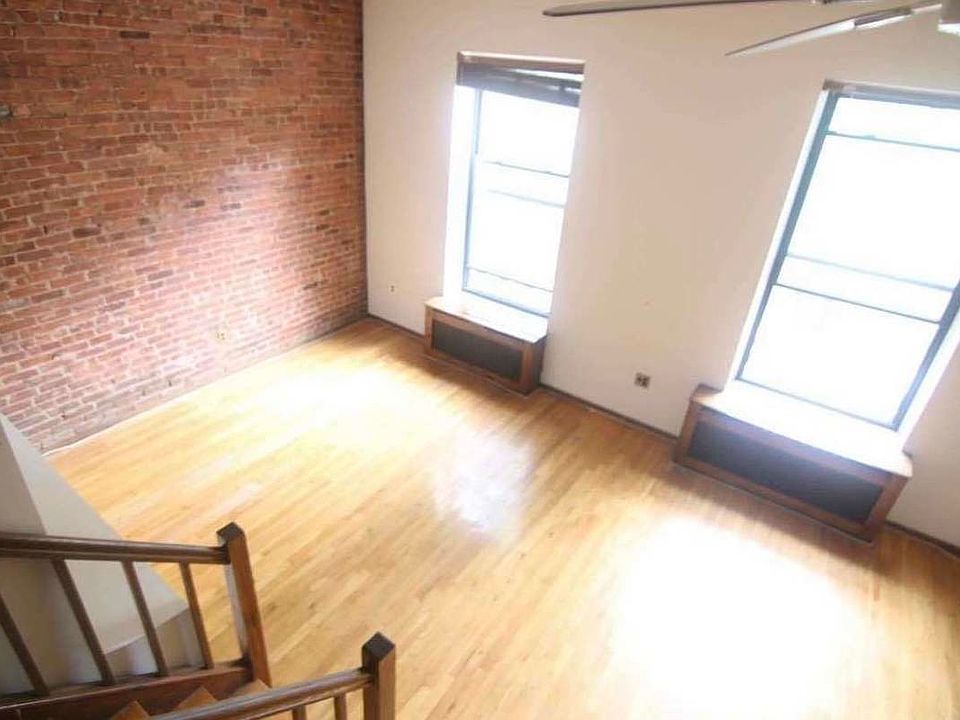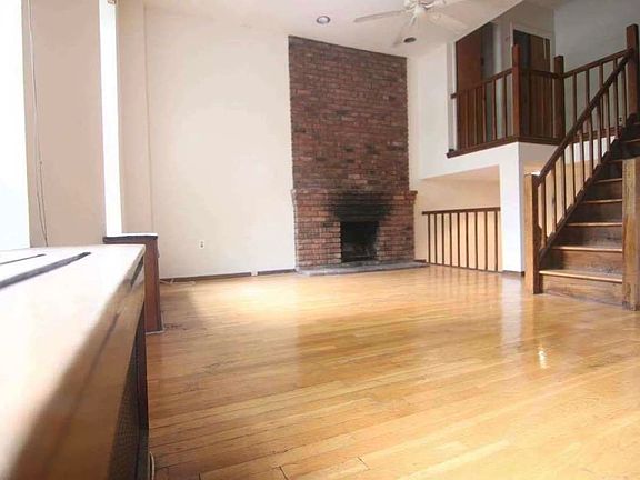 Sun-drenched HUGE studio TRIPLEX Hardwood flooring throughout, stunning brick wall fireplace Lots of Closet space. Separate Kitchen! Space for separate dining room and living room thanks to triplex layout