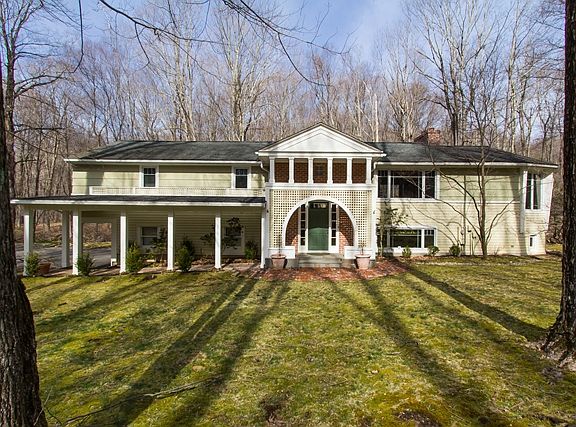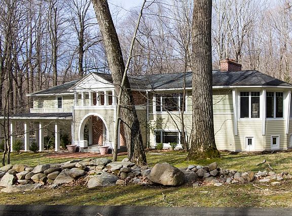 This renovated 4b/3fb ranch has a contemporary flair with breathtaking views from every room. Lots of natural light from the open floor plan shows off the Silvermine brook and cascading waterfall. Renovated chef's kitchen with s/s appliances, Vermont slate, walk-in pantry, 6 burner prof stove. Custom addition, octagonal room can be used as a music/family room with fpl & acoustical wood ceiling. Main level master suite and bath, walk-in closet, 2 bedrooms with full bath. The LL has a full bath and br, fpl, FR, office, and overlooks brook. Built-in bookcase open to reveal lg storage area/fitness area. Full house/auto prop. generator. Mudroom entrance off the garage. Absolutely stunning home with such a tranquil property and setting. (RE-LISTED -BUYER DID NOT PERFORM)