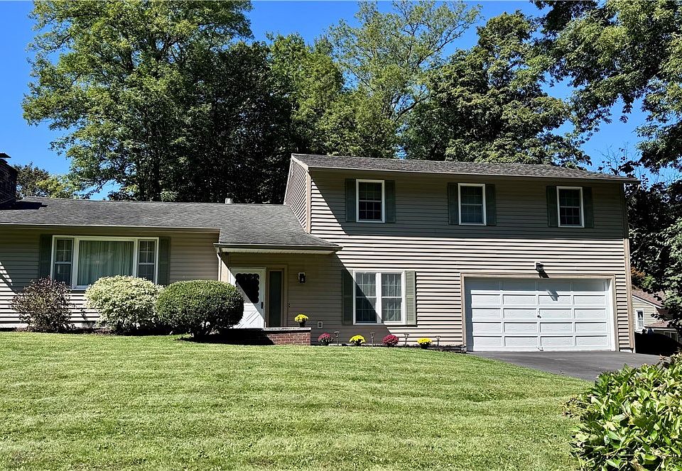 Welcome to this generously sized 4-bedroom, 2.5-bath split-level residence, thoughtfully designed for comfort and convenience. The open-concept living room, dining area, and kitchen are highlighted by soaring cathedral ceilings, creating a bright and airy atmosphere perfect for entertaining or relaxing.