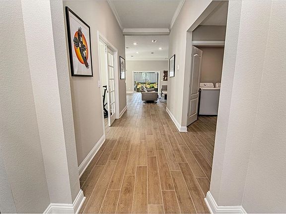 Welcome to 127 Zancara Street, a turn key home in the gated Dorado portion of Entrada. With 3 bedrooms, 2 bathrooms and an office/bonus room, this home offers the perfect blend of modern elegance and comfortable living. The great room seamlessly integrates the kitchen, dining, and living areas, creating an ideal environment for entertaining. The kitchen is a standout with quartz countertops, upgraded appliances, and extended upper cabinets for ample storage. The large pantry and breakfast bar provide both functionality and a perfect spot for casual dining. An expansive open floor plan offers lots of natural light and features soaring 10-foot ceilings adorned with crown molding, and sliding glass doors lead to a screened lanai and a fully fenced backyard. The spacious primary bedroom features a tray ceiling, an expansive walk-in closet, and a luxurious en-suite bathroom with a large walk in shower, double vanities, and a private water closet. The split floorpan has two addition bedrooms towards the front of the home with a shared bathroom, as well as an office and laundry room. Upgraded wood plank tile throughout the living areas. Residents of Entrada enjoy access to exceptional amenities, including two pools (one being a lap pool), tennis and pickleball courts, a clubhouse, a fitness center, and a playground. Plus, you're just minutes from historic downtown St. Augustine, pristine beaches, shopping, and top-rated schools. This is a fantastic opportunity to own a nearly new home in a vibrant, amenity-rich neighborhood. Call to schedule your private viewing today!