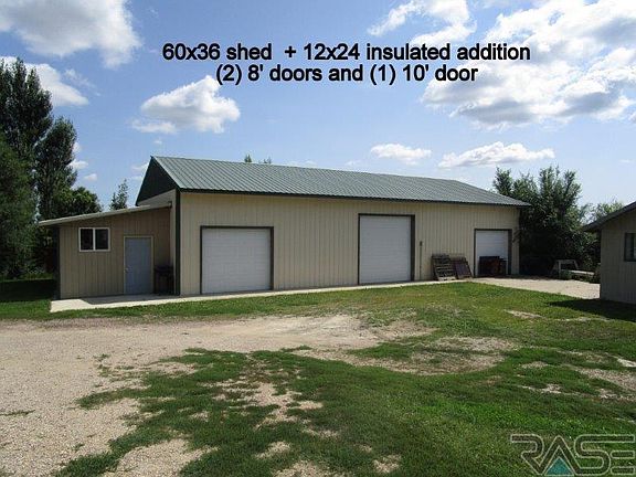Load up the horses and come home to the country! 5 Acres, 3 bdrms, 2 bths, a huge shed and a rocking chair, tea sipping front porch! Be welcomed home by this gorgeous setting. All remodeled kitchen complete w/new wd laminate flooring, countertops & hickory cabts. Formal living rm (18x14) may be dining or formal living rm w/new wd laminate flr. Spacious (26x24) family rm on main level w/WB fireplace & French drs to backyard. 2 full baths incl whirlpool, 2 BR on main, 1 BR on upper level w/knotty pine closet & built-ins. Hallway offers library or game room with built-ins. Main flr large laundry/breezeway. Basement has 1 egress window, updated furnace, electrical breakers & Marathon water heater. Outdoor buildings include 60x36 building + 24x12 insulated addn, 10x12 garden shed, 20x20 kennel, 18x17 greenhouse or mower shed. Fruit trees, garden space, 2-3 acres pasture, mature trees, gorgeous park-like yard. Metal roofs, vinyl siding. Close to Sioux Falls, Rock Rapids, Luverne and Hills.