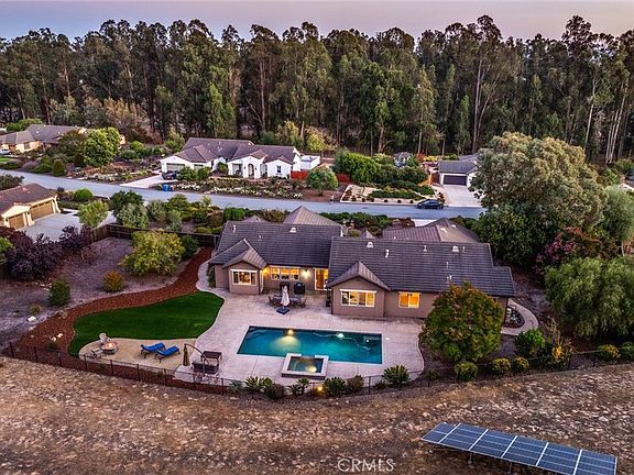 Step into the backyard oasis with a spectacular recently upgraded in-ground Pebble-Tec pool, enhanced with a cascading waterfall and spa. Open space to the rear and surrounded by drought-tolerant landscaping, raised garden beds, lemon, apple and avocado trees. The outdoor space invites both celebration and tranquility. Complete with fresh exterior paint, and a three car garage! Embrace the exclusivity of owning more than an acre while enjoying easy access to the highway, close proximity to three beautiful golf courses, world class wineries and coastal dining.