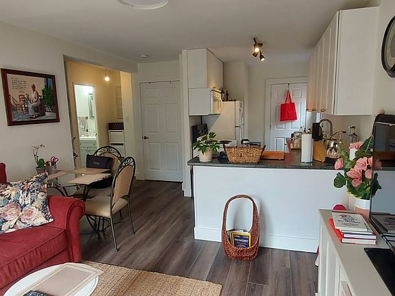 Inside, the cozy apartment offers a bright, naturally lit living space with new windows and tasteful finishes. The open-concept layout includes a modern kitchen, comfortable living area, and a well-sized bedroom with ample closet space.