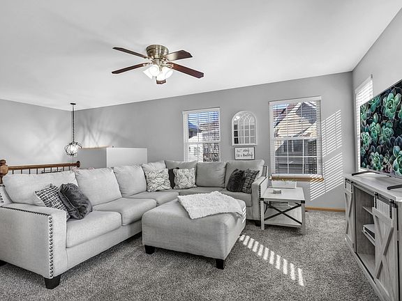 Reasons to own this lovely Cambridge Lakes townhome: additional free lifestyle perks with access to the pool, clubhouse, exercise facilities, along with walking paths, parks, playgrounds, and pond with pier. This sought-after end unit town home gives the feel of detached housing with over 1600 square feet of living space. The open concept kitchen offers tons of counter space, built in microwave, all appliances stay and overlooks the spacious living room and dining area with access to a private balcony. Relax and unwind in the large primary bedroom with walk in closet and shared full bath with double vanity. Downstairs you'll find the family room, third bedroom, and full bath, perfect for a roommate or in-law arrangement. Lots of storage space here too with the attached two car garage, laundry/utility room, and closet/crawl space under the stairs. Easy access to Route 72, 47, and I90.