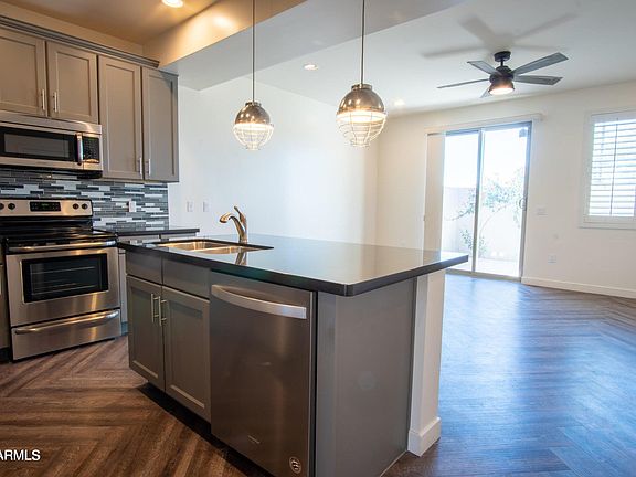 Modern 3-bed, 2.5-bath end-unit townhome for rent in North Tempe! Open floorplan with NEW luxury laminate flooring, granite counters, stainless steel appliances, and a private patio. Second floor is home to the two guest bedrooms, full guest bathroom and the laundry room . The entire third floor is dedicated to the primary bedroom with a private balcony, dual vanities, and walk-in closet. Includes 1-car garage + 2 covered parking spaces. Community offers a pool, BBQ area, and picnic space. Prime location near ASU, Tempe Town Lake, Papago Park, and easy 202 access. Old Town Scottsdale and Phoenix Sky Harbor are both 10 minutes in proximity.