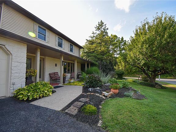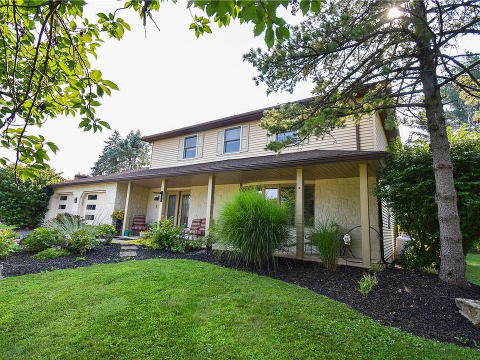 This colonial home is full of suprises. There are so many updates enhancing the expanded layout. Two spacious first floor family rooms. Designer kitchen with chef's appliances ($5,000+ THOR range is 6 months new), triple island, breakfast bar with granite and quartz open to large dining room. Shelf genie inserts on some cabinets. A remodeled first floor bath with 6" walk in tile shower and a laundry room were completed 2 weeks ago. Large casement and picture windows open the home to the fabulous rear entertaining space with an inground pool, trex deck, two large hardscape areas, stack stone walls and enclosed by aluminum fencing and privacy landscaping. The side of the house is an open area bounded by a landscaped berm for even more privacy. Second floor baths are done in modern tile and cabinetry. Tiled Owners bath has a walk in shower with jetted water system and double vanities. Many Windows added and expanded throughout. The main bath has custom cabinetry and tile and quartz vanity top. 4 Bedrooms are spacious. Hardwood flooring throughout the first and second levels. Finished rec room has space for all your family entertaining. Recessed lighting and custom fixtures throughout. Slider replaced 2023. Garage doors 2023. Exterior Stone painted to achieve a modern look 2023. Top down bottom up blinds in most windows. Remote operated blinds in the rear of the house.