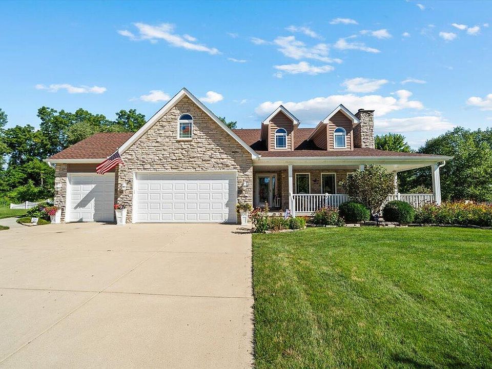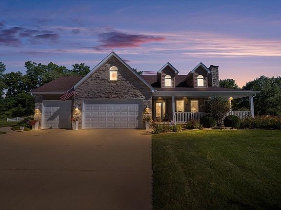 Beautifully Maintained Custom 1.5-Story Home on Over Half an AcreThis thoughtfully designed, custom-built 1.5-story home offers a perfect blend of comfort, modern upgrades, and flexible living spaces. Boasting two spacious master suites--one conveniently located on the main floor and another upstairs--it's ideal for multi-generational living or hosting guests in style.The bright, inviting kitchen is filled with natural light and flows seamlessly into the dining area. Step through the sliding glass doors onto a low-maintenance Trex deck with a full SunSetter awning, where you'll find a beautifully landscaped, fully fenced side yard--perfect for indoor-outdoor entertaining. Tucked into the corner is a spacious hidden shed, providing extra storage without sacrificing yard space.Inside, the cozy living room features a charming fireplace, while hardwood floors add warmth to the hallway and kitchen/dining combo. Two additional main-floor bedrooms offer flexibility for an office, guest room, or playroom. Upstairs, the second master suite feels like a private retreat, complete with a massive walk-in closet and a luxurious en suite bath.The partially finished basement includes a large family room and full bath--great for movie nights or a home gym--plus an unfinished area with built-in shelving, a workbench, and generous storage options.Outside, enjoy the charm of a wraparound front porch, two-tiered back decks, and a sprawling 0.57-acre lot that's perfect for gatherings, gardening, or simply relaxing in your own private oasis. A spacious 3-car heated garage and a full-house generator complete this exceptional property.