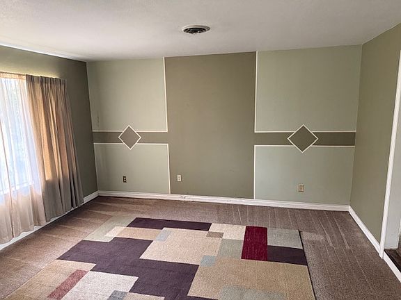 Inside, you'll find two spacious living rooms, perfect for both relaxation and entertaining. The custom-painted dining room adds a unique and welcoming touch, ideal for family meals or gatherings. Freshly shampooed carpets throughout the home ensure a clean, cozy atmosphere.
