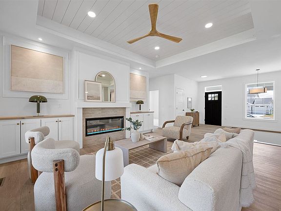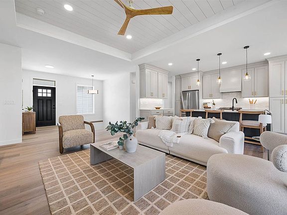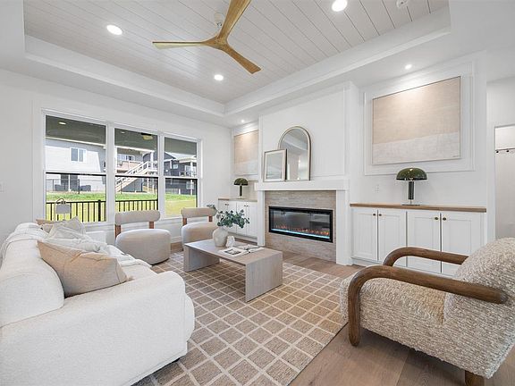 1270 Osage: A home with soul and substance. Brought to life by MJC Carpentry—recognized for legacy-minded details, this home was built with care, designed to set a higher standard. From custom cabinetry to the ceiling with designer moulding, to picture-frame trim and layered lighting, every element speaks to pride in craftsmanship and the distinction that MJC Carpentry builds. Nearly 1,800 square feet on the main level plus a fully finished lower level create a layout that balances openness with intention. Oversized entry and hallways lead to split bedrooms, while the great room’s tray ceiling, iron railing with stair lights, and upgraded LVP flooring elevate the everyday. The kitchen flows to a dining area and covered lanai, extending living outdoors. The primary suite features a spa-level shower and custom shelving that connects to laundry. Built-ins, a drop zone, and powder room add thoughtful convenience. Downstairs: two bedrooms, workout room, and rec space with wet bar and wine fridge. Additional highlights include a south-facing driveway, extended garage bay with access door and laundry sink, and landscaping planned for privacy. Across from Liberty High and minutes from Penn Meadows Park, trails, downtown Iowa City, and the new hospital campus.