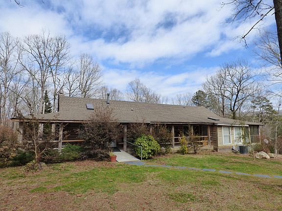 What a gorgeous house on a beautiful, private piece of property! A wraparound porch surrounds the entire house, with swings and sitting areas that give you amazing views. As you walk in the front door, you are immediately captivated by the skylights and the high ceilings in the den area. The open kitchen, which is equipped with all appliances, is perfect for cooking a meal for the entire family. An additional den area connected to the kitchen has a wood burning fireplace great for relaxing. Master bedroom has access to a cozy, private screened porch, and its own large full bath. Two additional bedrooms are right around the corner, with an extra room that was previously used to hold a hot tub. Within minutes of Highway 151. Don't miss out of this one!