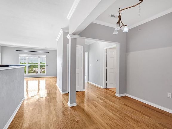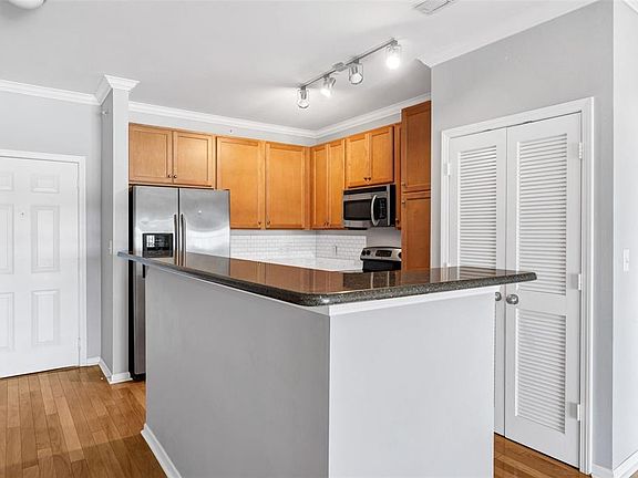 Gorgeous open floor plan with balcony overlooking the pool. With over 1000 square feet of living space, condo features formal dining room, kitchen with 42” cabinetry, SS appliances, center island, and granite countertops. Spacious primary bedroom with walk in closet and attached luxurious bathroom. Wall of windows in the living room provides plenty of natural light throughout. In-unit laundry area fits a full size stackable washer and dryer. Hanley Station amenities include: access to 2 pools, gated pet park, 24 hour fitness center and club room.