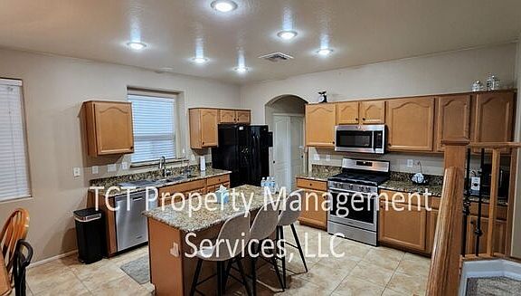 Welcome to this partially furnished 5-bedroom, 3-bathroom home in San Tan Valley, featuring a 3-car garage, formal dining room, desert landscaping. The kitchen boasts an island and all kitchen appliances. Enjoy the convenience of an eat-in kitchen and tile/carpet flooring throughout. The upstairs loft provides additional living space, while the master bathroom offers a dual vanity, separate tub and shower, as well as a walk-in closet. With a washer and dryer included, this home is move-in ready for your convenience. No pets allowed Property Available Now Tenant Costs: Security Deposit (refundable) $2000 Security Fee (non-refundable) $400 One-Time Lease Signing Fee $200 Re-Key Fee $85 3.95% Monthly Municipal Tax/Admin *The information contained in this ad is accurate to the best of our knowledge. TCT Property Management Services, LLC is not responsible for any error or omission in the wording or content of this information* *Disclaimer* If property is located within an HOA, it is applicant responsibility to research all CC&R's and ensure that any restrictions will be adhered to upon lease execution. TCT Properties DOES NOT advertise on Craigslist. We will NEVER instruct you to take the keys out of the lockbox. Upon approval of your application, we will NEVER request deposits to be paid through a wire transfer or through apps similar to CashApp, Zelle, Paypal or Venmo. This property allows self guided viewing without an appointment. Contact for details.
