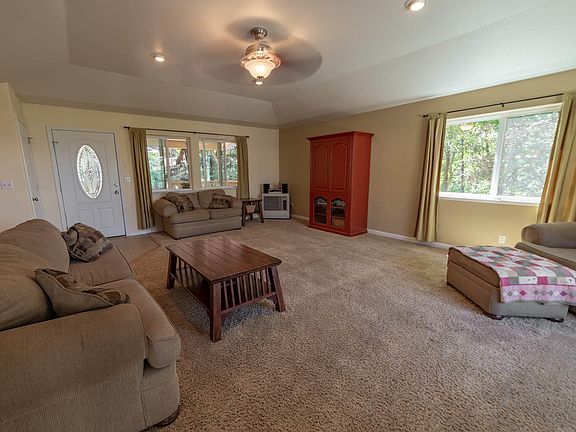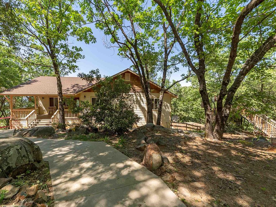 LET 'EM RUN!! Come see this great family home that comes with lots of acreage, a chicken coop, a full RV set-up and the neatest tree house in the county! Plus, there's 1440 sf of garage space for the ardent tinkerer with lots of storage for your tools and toys. As you walk up onto the covered front porch, picture yourself enjoying your morning coffee gazing at the mature oaks casting dappled sunlight across the yard. As you step inside, you will be amazed at the size of the great room! There is an unobstructed view from the large comfortable living room, through the dining room with family sized table right to the kitchen. The family will always be within view. The living room has a beautiful inset trey ceiling plus a permanent, vented, kerosene stove that keeps the temperature even year-round. The dining room floor is handsome and unique. It's hardwood maple flooring that was reclaimed from a high school gym that was being replaced. It just might last forever! There's enough space in this dining room for your dinner parties as well as serving the entire extended family during the holidays. The dining room joins the kitchen with a breakfast bar that is part of a large two-level island that holds the electric range. There's granite tiled prep space galore with plenty of room for more than one cook and even a desk area that acts as the family information hub. Next to the dining room a flight of stairs goes down to the lower level where there is a very large game, play, TV room that will hold a crowd. It also has a second permanent kerosene stove to keep the area toasty in the winter. There are two large sized bedrooms separated by a full bath off of the hallway from the dining room. Both bedrooms are good sized with large closets. The bath has tons of storage with a separate shower - perfect for the kids. Off the kitchen is a second hallway that leads to a third bedroom, an extremely large laundry, utility room and a complete guest bath with tub/shower and storage for linens. Continue down the hallway to the master suite. The en-suite contains a walk-in closet, dressing area, a great soaking tub, double sinks and a large shower. The bedroom is good sized with a sitting area and French door access to the deck. No description of this house would be complete without talking about the garage and surrounding yards. The garage is massive with an extra-deep two car bay that has workbench areas, shelving and storage space galore with loft areas. The third bay has a very high ceiling to hold cranes or lifts for working on cars or other projects, and is deep enough to hold two cars in tandem. There is plenty of space for the family's quads, boats, motorbikes and whatever other toys you can imagine. Next, step outside the garage to access the most amazing tree house constructed around a towering oak in the front yard! The main room holds built-in bunk beds for summer sleep-outs. It also has climbing ropes, a slide and other fun stuff. And don't forget the chicken run and coop with chickens that can be purchased if you wish to carry on the practice of fresh eggs available at any time. The house is situated on a hillside with its 5 acres unfolding below. There's a driveway beside the house that leads to an area below that holds a 40 ft storage container and a full RV setup including septic, electric, phone and water. The expansive views from the deck look out towards Columbia and New Melones. While the property is quiet and private, it's only 15 minutes to town and very near Columbia College. All in all, this is a totally kid-friendly environment with a spacious, more recently constructed, family home. Come see for yourself. It's worth the short drive up the hill - you may just find paradise!! Sorry, there will be NO showings on Saturdays.
