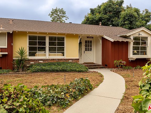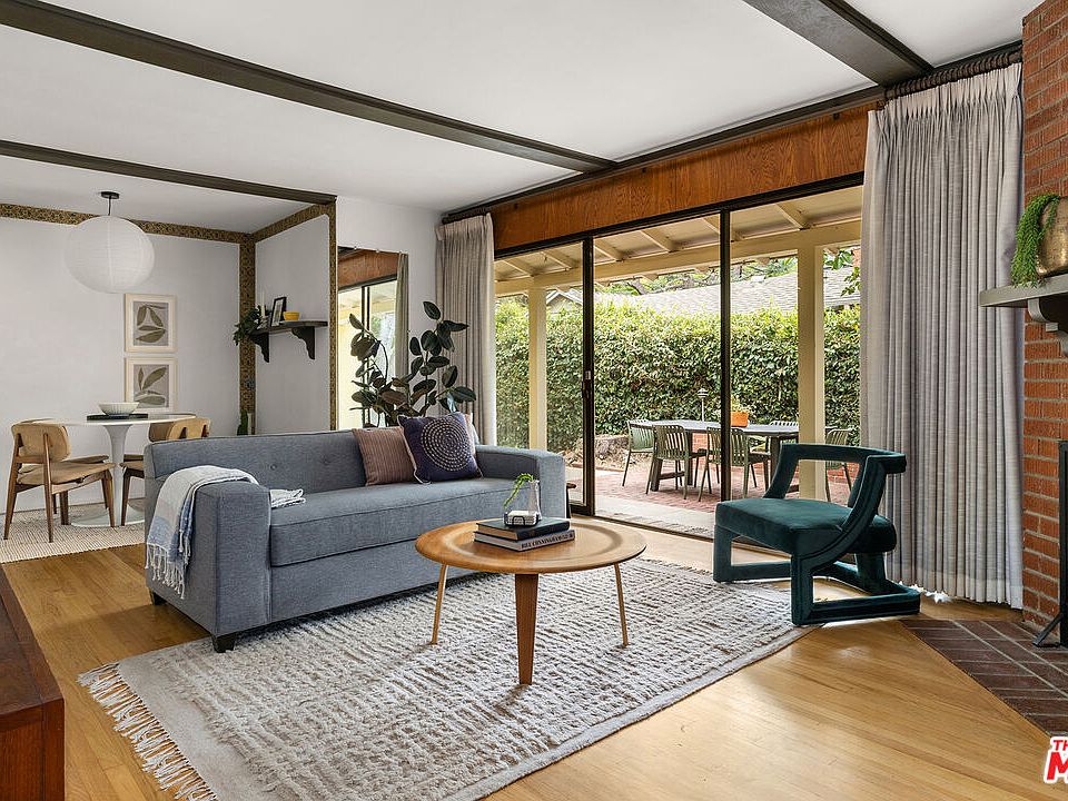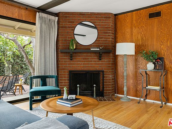 Tucked away in a delightful pocket of Studio City, this Mid-Century gem blends country charm with timeless character. Lovingly cared for by the same family since 1970, the home retains many original details, offering a warm and nostalgic feel throughout. A wall of glass doors and windows frames views of a charming brick patio shaded by lush greenery, creating a seamless indoor/outdoor connection. The living room's untouched brick fireplace and classic wood-paneled wall add vintage appeal, while hardwood floors flow throughout the home. The original knotty pine kitchen features updated appliances and a cozy breakfast nook with a large picture window. North facing windows fill the home with fantastic light. The home offers 3 spacious bedrooms, a main bathroom with a separate bathtub and stall shower, and a half bathroom. Many modern updates have been completed, including recently upgraded plumbing and HVAC systems. Additional features of the home include a spacious 2-car garage with easy access to the house, ample storage, a separate laundry room, and multiple lovely outdoor spaces. Set amongst a tree-filled backdrop that includes stunning deodar cedars and mature avocado and persimmon trees, this is California living at its best. Just a short stroll to Studio City's beloved Beeman Park, Whole Foods, Studio City library, Hugo's Restaurant, and more, this property offers a rare opportunity to enjoy an unbeatable location at an exceptional value.