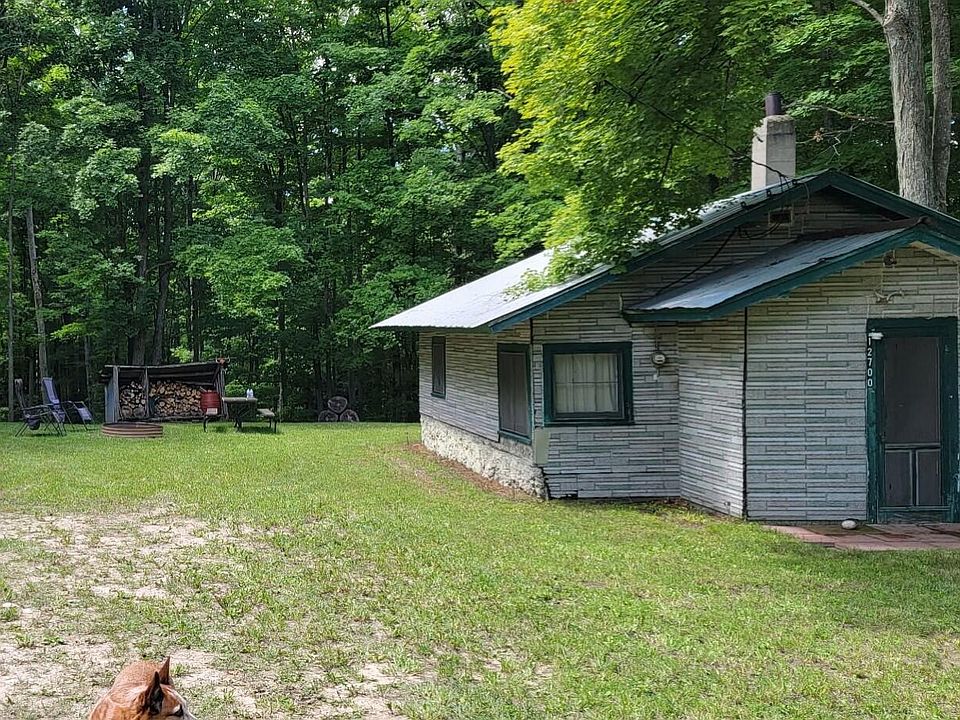 Up North hunter's paradise near Atlanta, the Elk Capitol of MI. This 5-acres offers a cute hunting cabin with futon, dining, a family area, and a wood-burning stove. The yard offers an area for relaxing by the outdoor fire pit and enjoying nature, family, and friends. 2 storage sheds and a separate small structure used for the bathroom. All-wooded and private, this land is perfect for those seeking a true wilderness experience. The five acres are wooded with hardwoods and nice hunting, just down the road the owners are also selling a pristine 35 acres ($110K) with deer blind, and deer stands making this getaway an even better. 12261 Secrist property vacant 35 acres offers prime hunting land with deer, elk, bear, and abundant wildlife, making a perfect hunting spot. Property Sold As-Is The loft bed, the cots and the dining table and matching chairs are not included. The futon and the end tables stay with the cabin. Mower in shed is negotiable.