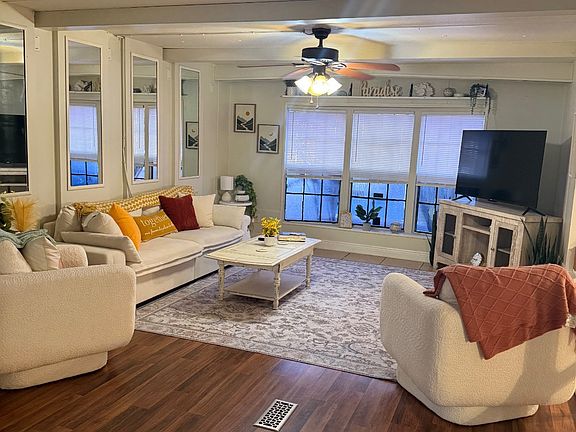 Fully updated kitchenOversized carportInviting screened porchValuable additionDouble-wide spaciousnessFresh flooringPractical storage solutions